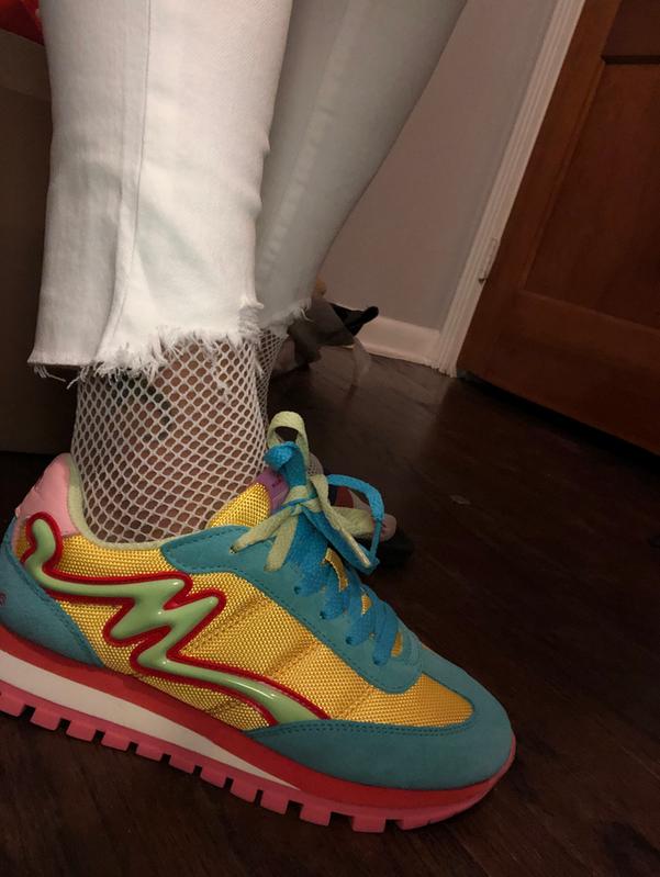Stylish, Classy, Hip,Trendy, these sneakers are it, impeccably made. Marc Jacobs just surprises you with his edgy designs, something i wouldn't have brought but did because of the uniqueness of the sneaker and the colors alone make this a desirable sneaker. Price is a little steep but well worth it.. I'm super happy I picked these up will be one of the few with them in NYC.
