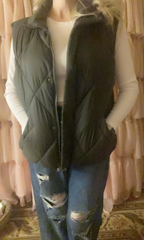 This vest has been perfect for these spring days. It’s perfect to throw on for a cool day! Very stylish and forest green color it perfect for me. It’s fluffy and warm! I got so many compliments on wearing it.