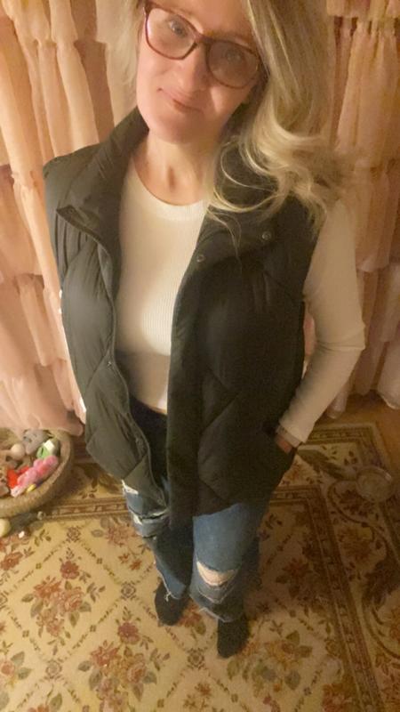This is the cutest vest to throw over a long sleeve shirt or hoodie. I can dress it up or dress it down. It’s warm and appears to be well made. I have the dark purple which is a really beautiful rich color.