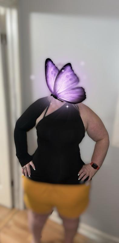 I LOVE this top! I borrowed a friends and after constantly thinking about how fabulous it was, purchased my own. I love the style and fit. Great looking on! I get a ton of complements and black goes with everything! It's a win win! Thank you.