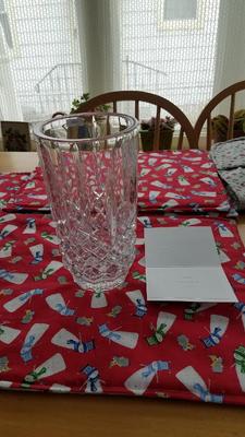 Item arrived very quickly and is beautiful! Love Waterford and this vase makes a lovely statement. It's sturdy and lovely at the same time.
