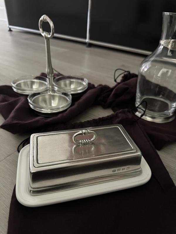 This butter dish instantly elevated my dining table. It looked beautiful in photos, but in person, it’s truly stunning — the perfect blend of refined craftsmanship and timeless charm. The pewter lid has a subtle, classic glow that makes even simple breakfasts feel luxurious. It’s a small piece, but it completely transforms the atmosphere of the table — a statement item that feels elegant yet understated. I couldn’t be happier with this purchase.
