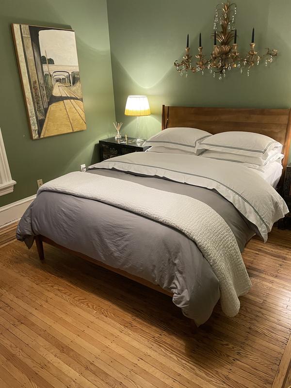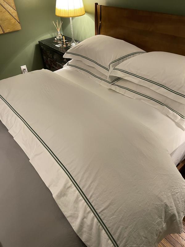 i love this duvet cover. It is very crisp and clean looking/bb i have queen bed and duvet and this a nice large size. I find sthat stains come out very easily but it is a bear to rion.