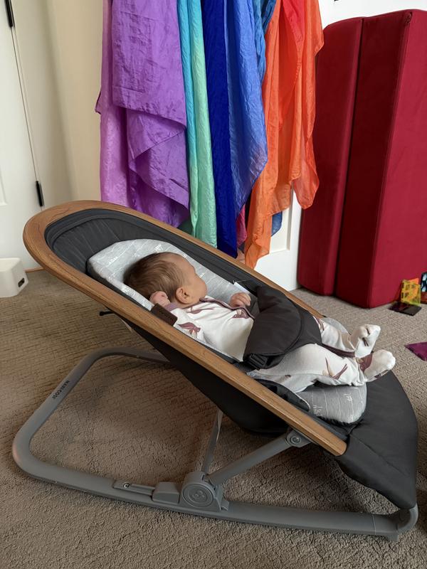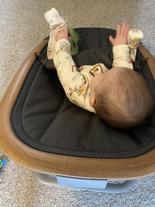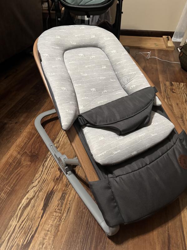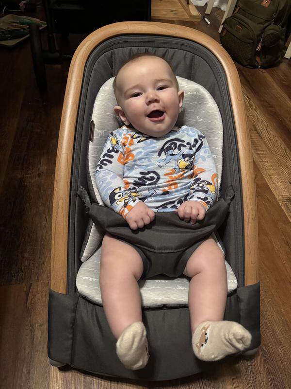 My little one is almost 4 months old and officially in the “I want to see the world!” phase. The Maxi Cosi Kori Rocker, which I received from the Stellar Product Testing Panel, has provided the perfect spot for him to hang out and take in all the action. He enjoys the upright view, and I enjoy having a safe place to set him down where he feels totally happy. It’s also surprisingly lightweight! My husband, in-laws, and I move it around the house everywhere we go. It’s given us so much more freedom within our home, and has granted our baby his own independence while still keeping him close. We use it during playtime, cooking, eating, or folding laundry… and it’s been an unexpected MVP when one of us is solo parenting and, inevitably, nature calls. I appreciate the rocker’s stylish, thoughtful design — totally in line with what I’ve come to expect from Maxi-Cosi. The woodgrain pattern against the dark fabric looks so chic, and I appreciate the dual adjustable buckles and fully removable, washable seat cushion. The 2-in-1 functionality gives us a lot of versatility depending on the activity or mood of the moment. The rocking mode has helped put my baby to sleep a number of times, while the stationary mode holds up well to the many happy wiggles he throws at it. I only wish it had a higher weight limit (max is 20lbs, my baby is 16lbs), which I’m only disappointed about because of how absolutely essential the Kori Rocker has become in our home and I foresee my guy surpassing the limit in another couple months.