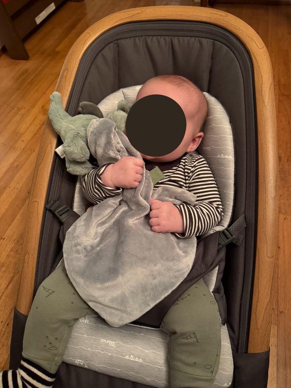 We received the Maxi-Cosi Kori Rocker to try as part of the Stellar Product Testing Panel and we absolutely love it! The woodgrain look is so modern and fits in beautifully with our furniture, unlike many other baby items. I especially loved that it has small legs that stabilize it, allowing me to move my little guy to higher surfaces like the kitchen island while prepping dinner or the dining room table while helping my daughter with homework.He loves to rock and move, so the fact that this rocker is a two-in-one and also rocks was incredibly helpful when multitasking. I could gently rock him with my foot while folding laundry or getting ready in the morning. The pad inside is very cushiony, and my little guy seemed extremely comfortable. It also sits deep in the back, so it appeared that more of his bottom was in a seated position and his weight was more evenly distributed throughout the seat.We had another rocker prior to this one where it looked like all of his weight was being supported by the buckle between his legs—not very comfortable, in my opinion. The only downside for us is that our little guy is actually quite long (99th percentile), so when we set him in the chair, that comfy cushion compresses and leaves about a 2-3 inch cushionless area at the top of the seat. Since he is so long, about an inch of his head overlaps that area without the cushion. It doesn’t seem to bother him and certainly wouldn’t be an issue for an average-length baby.Even with that, this rocker is still our favorite and gets used often because it’s so easy to transport. We traveled from house to house over Christmas, and this rocker folds flat with the push of a button, making it easy to fit in the car and convenient to carry. It’s also very lightweight, so I was able to juggle carrying it, a diaper bag, and the car seat while my husband carried all the presents to the car.It has multiple recline positions as well, which is amazing because our little man napped in it (with supervision) while visiting relatives, and he could also sit up and see what was going on when he was awake and our arms needed a break. We would definitely recommend this rocker to any new parent, especially one who is always on the go!