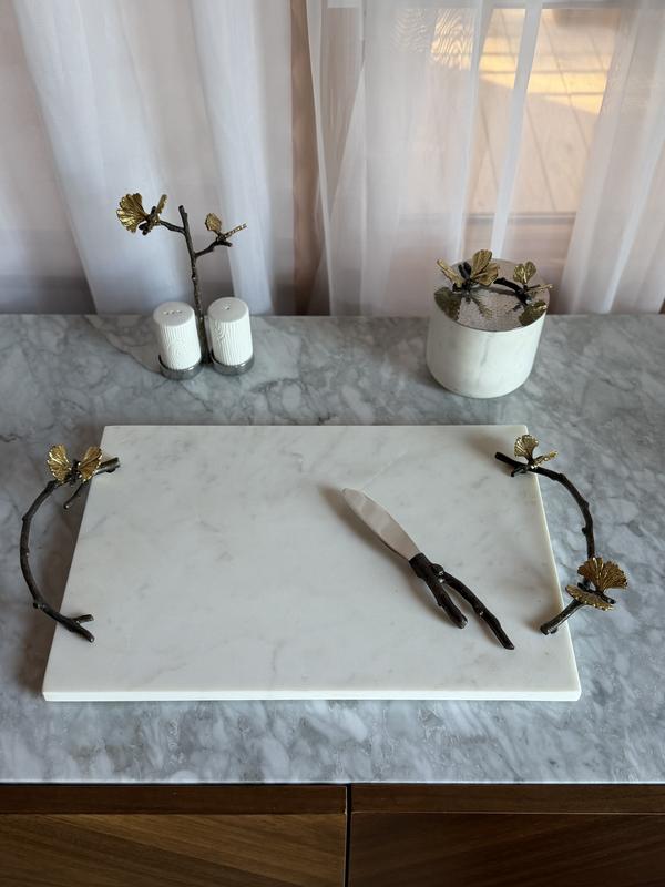 Love Michael Aram products and this cutting board and knife is no exception. This is beautiful and a very useful and versatile product. I can use this to add a great addition to my serving pieces.