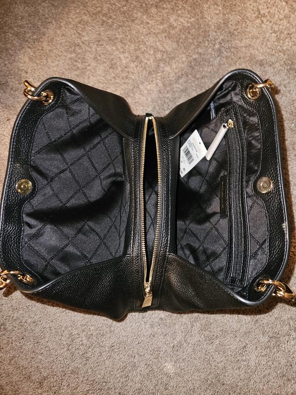 MK pocketbook have organization down pat! This bag with 3 compartments is no ask big as other MK bags but is designed with 3 compartments for ease of use. One problem is MK has gone cheap by removing inside pockets for eyeglasses and sunglasses. They removed all in other bags and I think they lost sales for their removing liner and cheapness. Glad old style is returning.