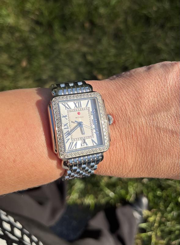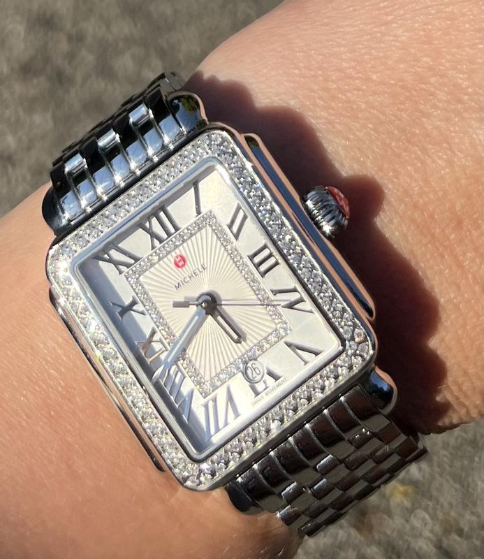 THIS WATCH IS GORGEOUS!!! I did go to buy the watch but made the mistake of trying it on and it was over! It's mine now. I got the white stainless steel with the diamonds.