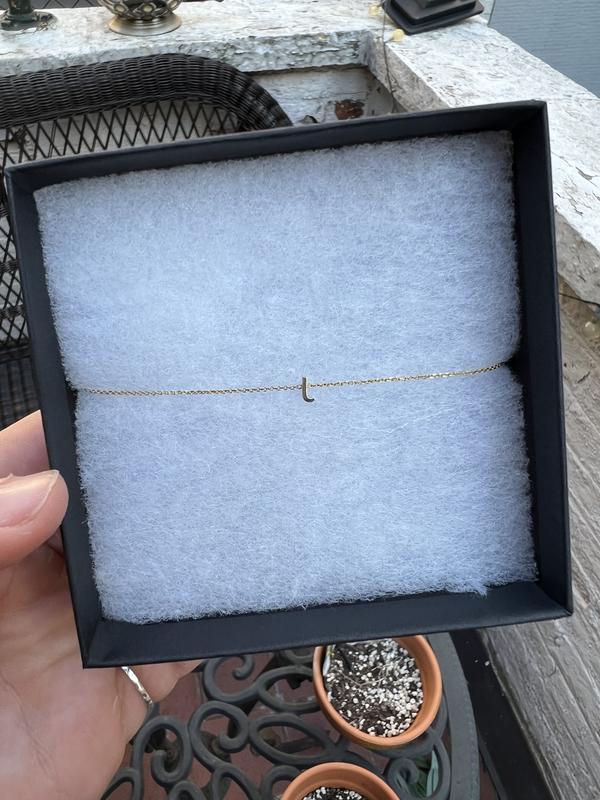 This was actually a replacement to a previous “A” bracelet I had. Absolutely love it, very dainty, very classy. My only complaint is that the ability to shorten the bracelet is not enough without a jeweler’s intervention.