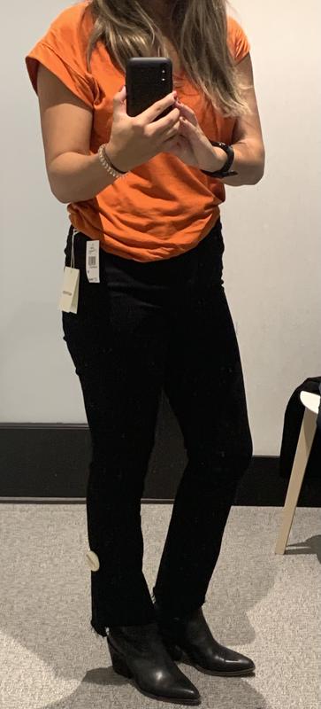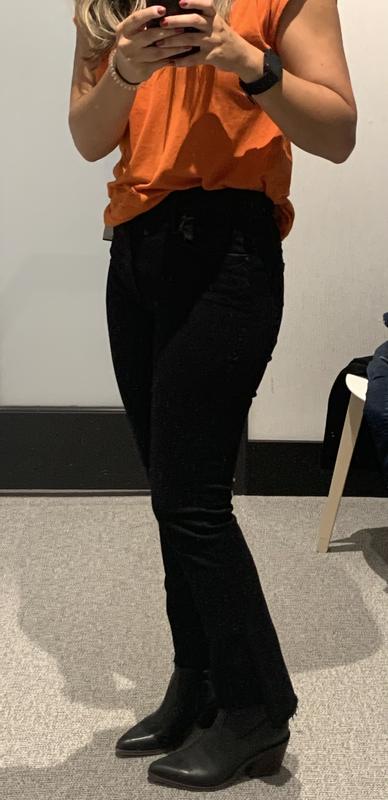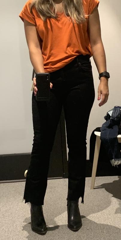 Tried Mother jeans for first time. AG jeans is my go-to brand. Wish I could return but already wore once - the feel too thick -too heavy - too stretchy - the fit didn't really do much for me. The fabric blend has too much model not enough cotton. I'm petite so length was good without hemming but I'm sorry I bought. Also made my butt look flat. Big mistake for $238.