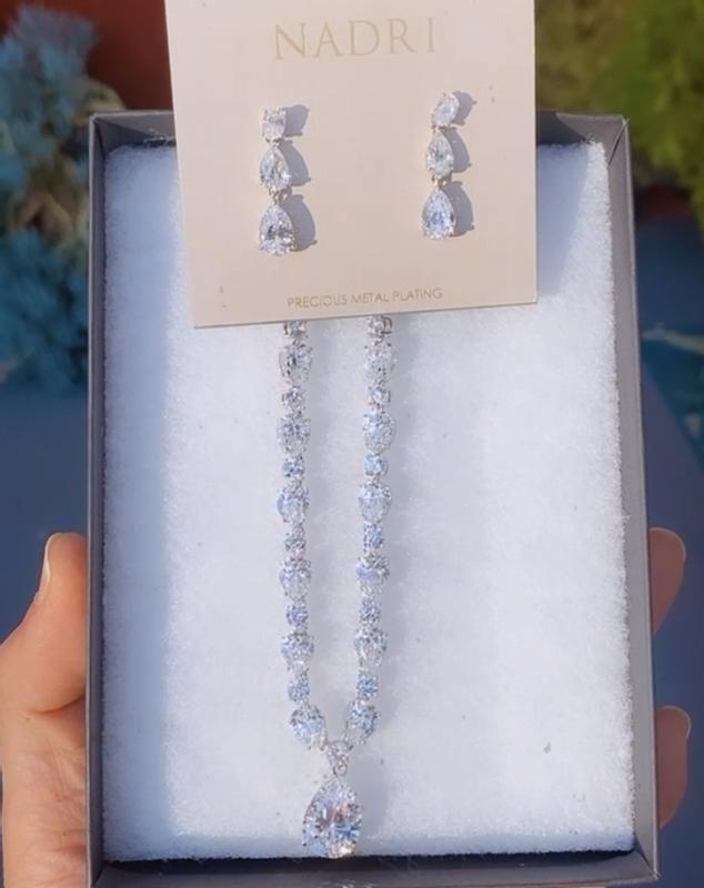 The Nadri Pear Pendant necklace is beautiful. Sparkles and catches eyes. It is not too much and not too little. I am a medium sized woman and some of these formal cz and/or crystal necklaces can be too short. This one is just the right length for me.