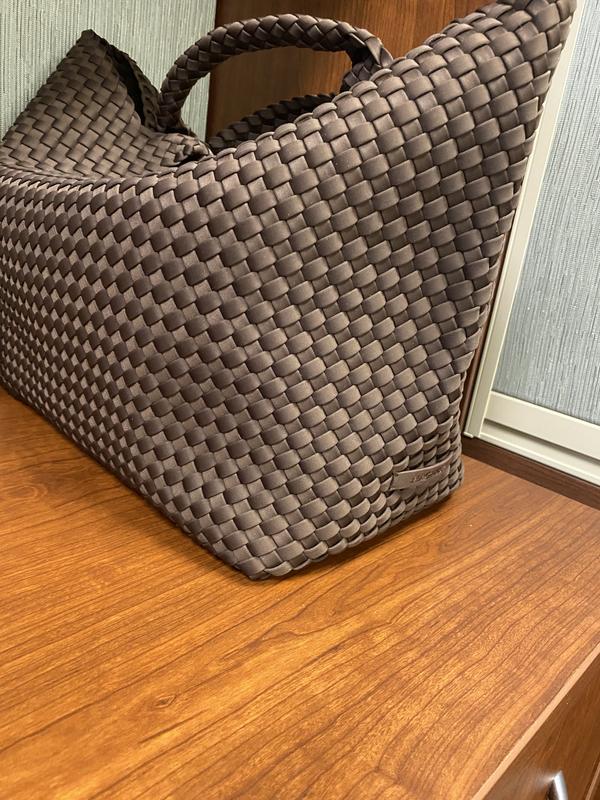 The large woven Naghedi tote bag in “Cocoa” is a lovely design that can hold a magnitude of items. Perfect for beach, travel, business or school. This weave is crafted of a sturdy fabric material that should last a lifetime if well cared for. At 5’8” this bag is proportionate for my height and frame. Though, I am having second thoughts about the color. It’s cinnamon-y shade is a bit flat and boring. But for the great price I paid, I should probably live with it. With that, I’ve been considering tying a scarf on it to give it some life. Overall, the limitless functionality may ultimately trump a move to “return to sender.”