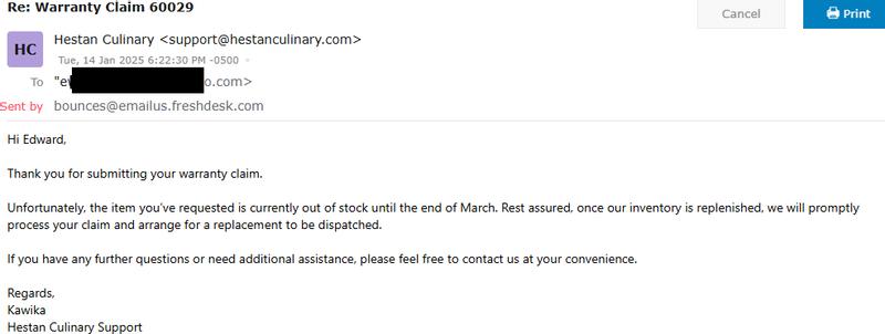 Customer review from hestan.com