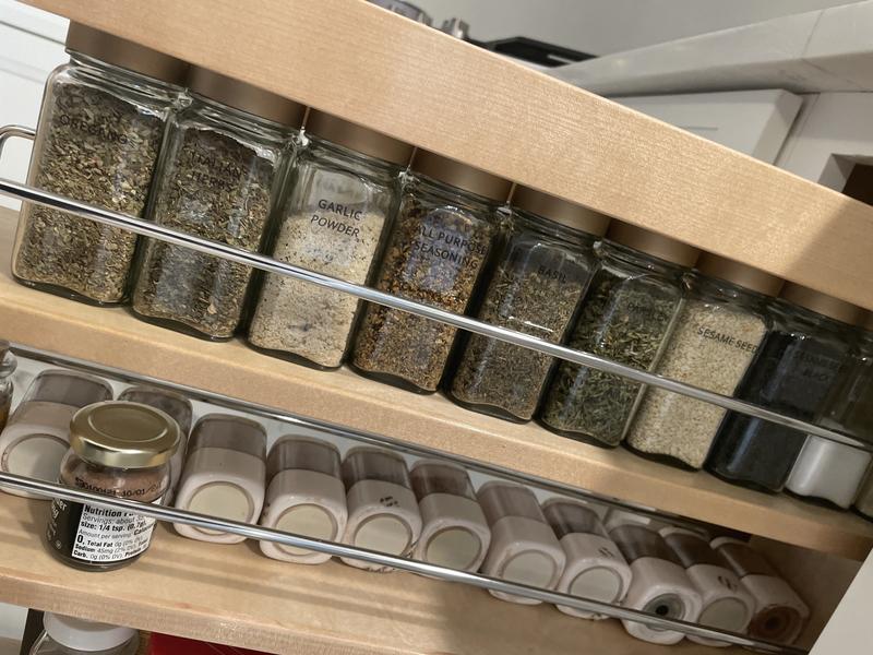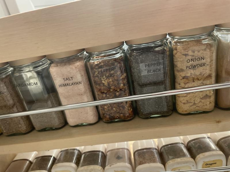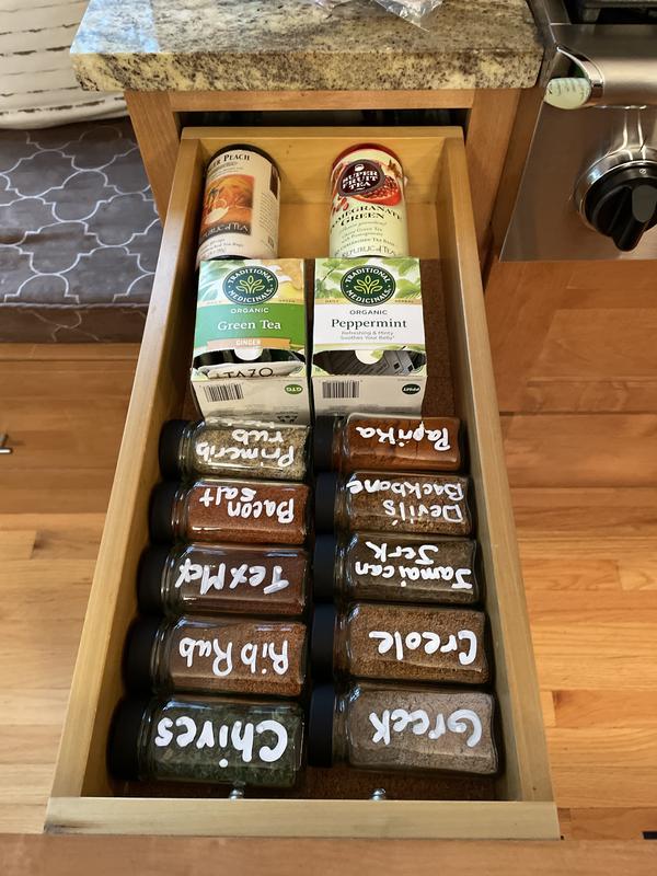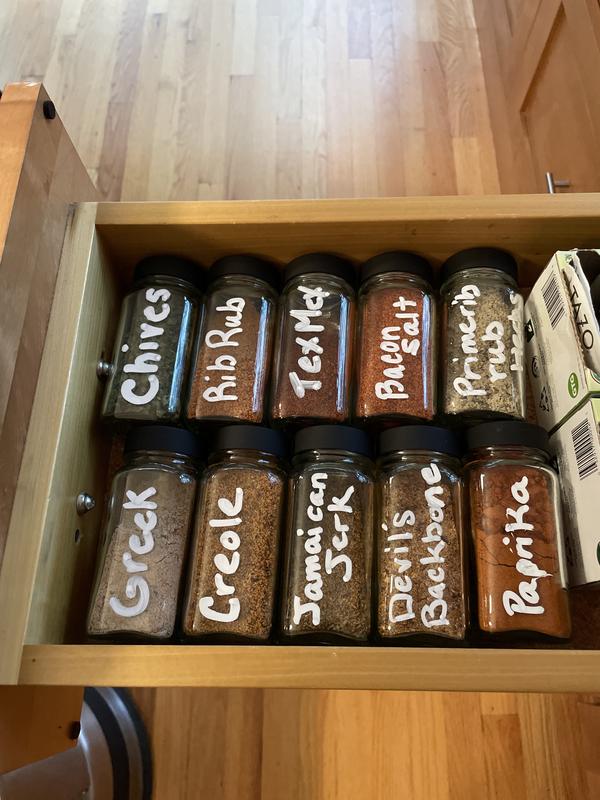 Perfect size to fit in the drawer. Bought a wine marker to label. Love the square body which keeps the jars from rolling.