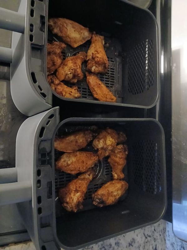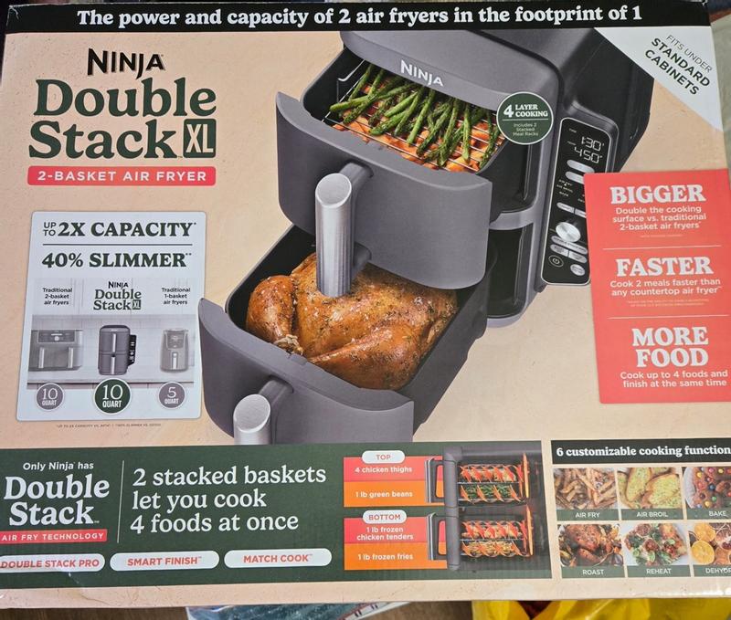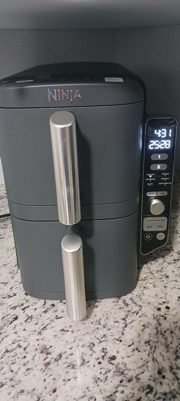 This is the first time I officially have to say I am not happy with a ninja product. I bought this because I thought it would be a great space saver in my kitchen considering I don't have a lot of counter space. And I was super excited because I would be able to cook chicken wings in it all at one time instead of having to do batches of 8 to 10 at a time. When I first received it I noticed that it takes longer for stuff to cook in it and things don't really get crispy. I like my chicken wings a little bit on the crispy side when it comes to the skin and I can't get them like that with this. It takes me twice as long to cook items in it that I would normally cook in another air fryer in 5 to 6 minutes. When you pull the baskets out The machine keeps running you have to actually pause it which was not something I had to do with my previous air fryer. When I just want to heat things up it takes even longer then what it should. I think the idea of this is really great but having both baskets connected is not fun as I was wanting to do broiling to crisp up my wings a little bit and I can only broil in one and not both of them at the same time. If you're one of those people that love to make the mac and cheese in your air fryer you cannot do it in this one. I did find them easy to clean which was great All the food comes right off when you put the things in the sink and wash them. But this is a two-part system that runs together and it just doesn't cook the way a regular air fryer does that doesn't share the same cooking elements. I'm an avid Ninja user probably 90% of the appliances in my house are from Ninja all the way from my air fryer to the Ninja Swirl we just bought. But this one just doesn't cut it for me, I wish I could return it but I believe I've had it too long at this point.