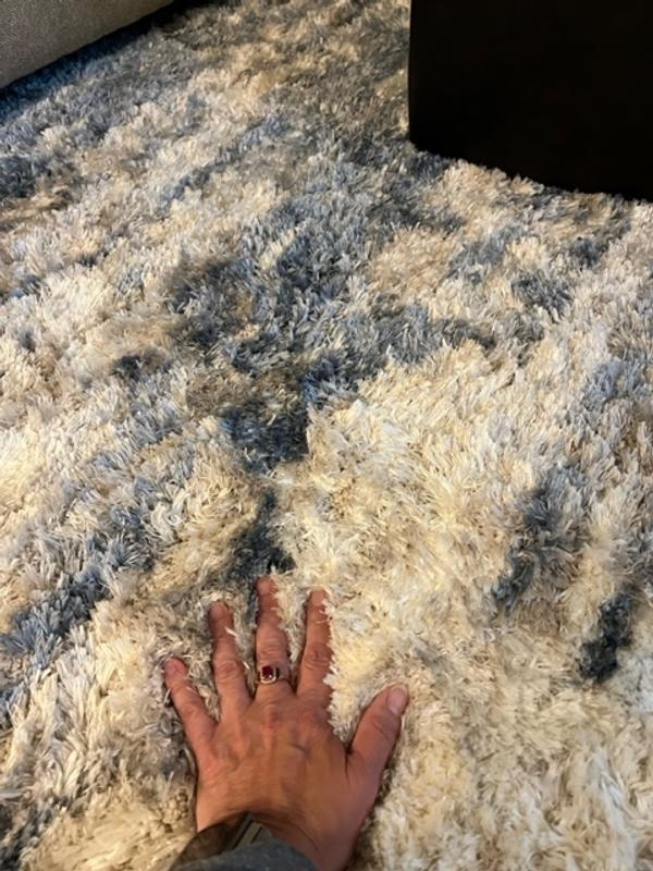 I just got this rug so I cannot attest to how well it will wear (why I gave it 4 stars for quality as too soon to tell). It appears to be well made, though, as I did not have a lot of loose threads come out of it when we rolled it out (a good sign that it will hold up). I love that it is abstract and not a specific pattern. It is just as pictured on the website, so I am most pleased with the colors. There is both light and dark blue threads, while the light blue is more predominant over the darker blue shades. Having the beige tones also in the rug gives my very grey room some warmth (my designer said I needed this). The cream, which may be a tad more predominant than the other colors, blends it all together and helps create neutrality. The size was just perfect (6' 7" by 9' 2") since this is a small one-bedroom apartment and so there is not a lot of length or width. I searched everywhere for something abstract like this rug that would fit my space and it was not easy. I would have preferred a straight 9 foot or maybe an 8' 10" because walls tend to be 9.5 to 10 feet and you don't necessarily want a rug that runs to close to your sliding glass door, but this is working well enough; it gives me about 12 inches to the vertical blinds. So happy I found it!
