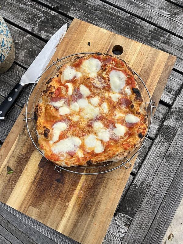 A spontaneous buy, this oven is a fantastic way of bringing people together. Tested it by inviting family over and everyone wanted to be involved making & baking their own pizza. Don't bother with charcoal, good supply of wood burns fast and hot - the digital thermometer keeps you constantly up to speed with when to pop another log into the firebox, and only a matter of seconds for the flames to lift the heat back up. Worked equally well with chicken skewers & steak, so very versatile and useless addition to the garden. Only con, quite weighty and awkward to move. But overall a great bit of kit! Don't forget to get a peel to move the pizza in and out, a basic spatula is enough to rotate it so no need to buy that as well