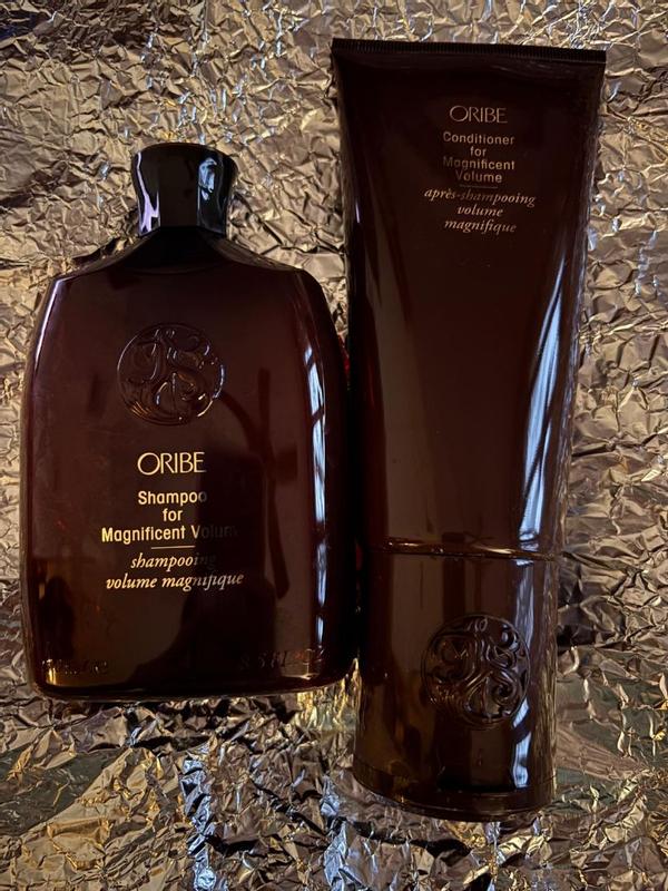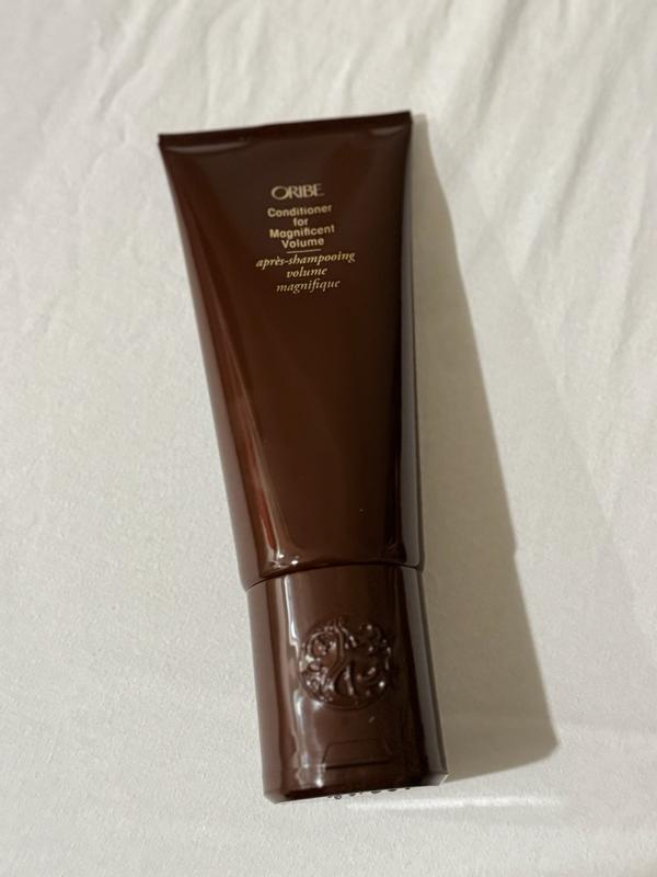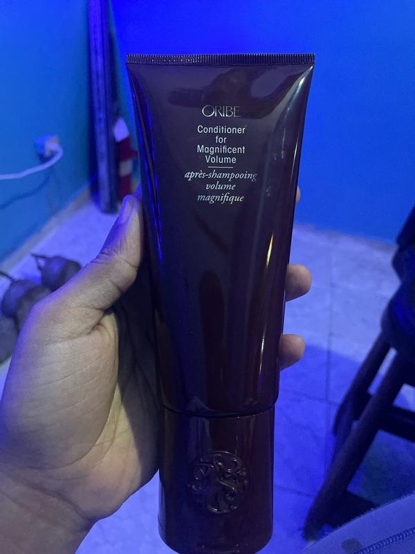 The Oribe Magnificent Volume conditioner has a real power to transform fine or lifeless hair without stealing volume, because it nourishes just enough to soften and strengthen without leaving it heavy; its consistency is creamy and rich, it is felt immediately when applied and slides easily through the hair, detangling effortlessly, and the sensation is very pleasant, as if the hair was "filled" but still light; when rinsing it, the touch is soft and silky, not greasy, and once dry the hair looks more body, movement and natural shine, it feels healthy, manageable and with a beautiful texture, accompanied by that elegant aroma that makes the whole experience feel powerful and salon.