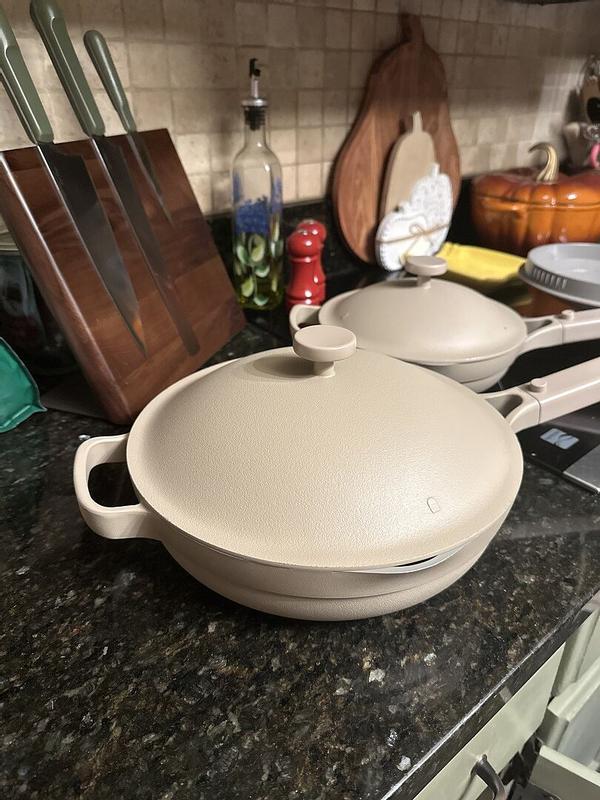 This is the third 2. 0 Pan that I have purchased over the past few years, because they are excellent. Aesthetically, they are lovely in my kitchen, so I can leave them out. When cooking, I know they are safe and cook evenly. I highly recommend the 2. 0 Pan!