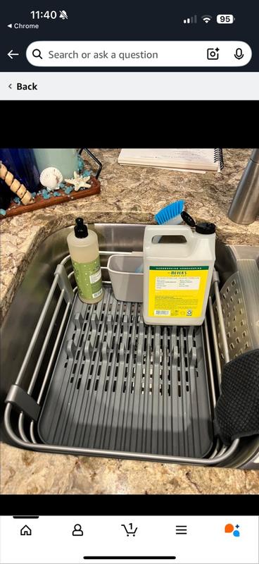 I initially thought I would not like this be a it seemed like a lot of flat area for water to stand. Found out that there was a slope towards the holes and water did not stand in the flat areas. I love this because when I toss a small spoon or lid into the reach it doesn’t slip through the grates like on my old drainer. I cook and bake a lot so use a wide variety of utensils and this rack hold all of them well. It is big enough that it fits the whole sink- but doesn’t hit the sides. The aluminum legs and wrap around part seem very sturdy and hopefully will not rust. I am so pleased with this dish drainer after 2 weeks that I plan to get another just like this for when this one becomes old and worn out.