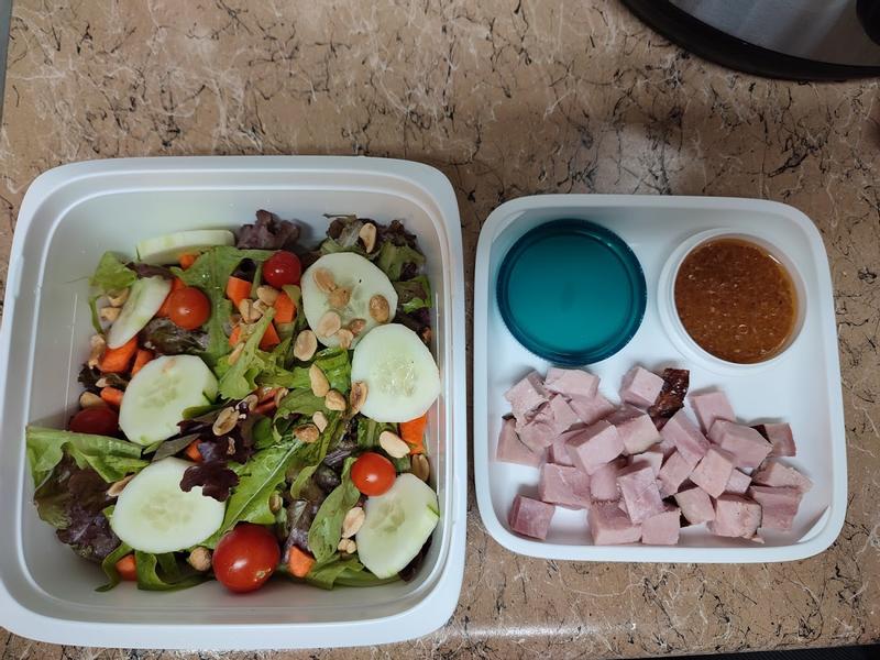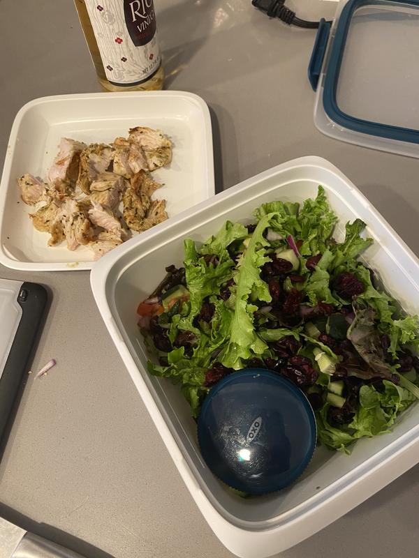 Love this!!! I have used it so many times for so many different things. The dressing container is also the perfect amount of dressing for a salad. Loved that the tray piece is microwave safe so I can just warm up parts of my lunch.