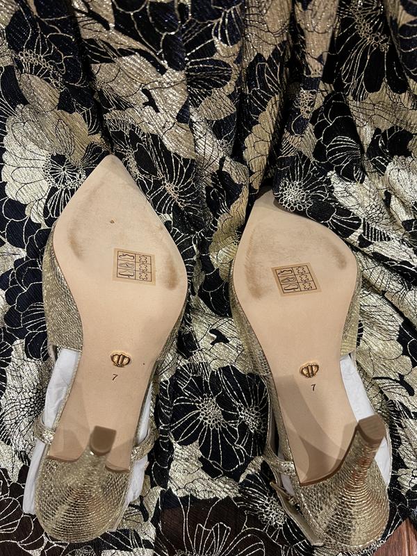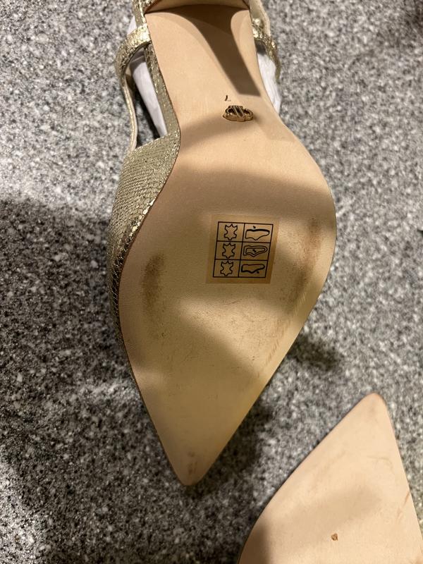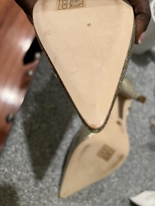 I actually really love the shoes, and the gold color is a perfect match to the dress I bought them match. The reason for the low rating is that I did not actually look at the bottom of the shoe until it was time to pack for my trip, and that is when I noticed the shoes appear to have been worn before being sold to me. There are chips on the bottom of one shoe beneath the toe, and the bottom of both shoes have wear. I am shocked and disappointed, but it is too late to attempt to exchange them due to the delay in me noticing the issue and the fact that I actually need them for the wedding I have flown out of town to attend. I am just chocking it up as a loss.