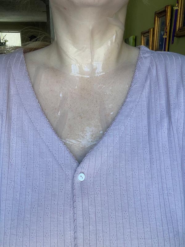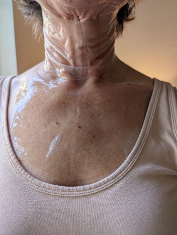 I recently turned 46 and have been pretty unhappy with how my neck looks for the past year or more. I see crepiness, horizontal lines and some discoloration. I've had CO2 laser resurfacing sessions which I think mildly helped, and will try some IPL and microneedling later this fall. But I also wanted to see if these masks would help the appearance of my neck, and I think they do - my chest definitely looks smoother, and I think my neck looks better after using these. However, the improved appearance doesn't last beyond half a day after I use the masks. So I think I'll keep using Firm Believer before events where I want to look and feel better about my neck and chest, with the realization that it's not a long-term solution.Also want to note that you really need to be laying down to use this mask, especially on the neck - otherwise it just falls off pretty quickly. Stays on the chest a bit better. Took a star off for this.