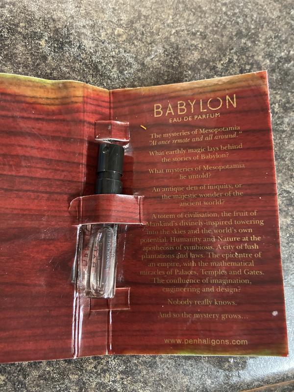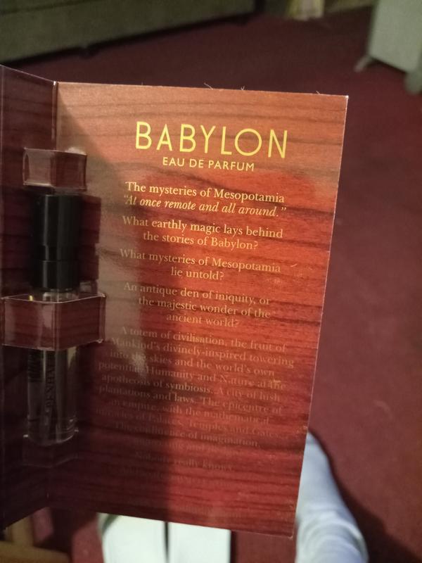 Babylon is an incredibly sexy fragrance. Warm vanilla is balanced with cedar. Not cloying or too sweet. I am addicted to this scent. It is the perfect makings of what your sophisticated riche Auntie would wear. And I mean that in a good way! A few spritz will carry you through the day or evening. Not for everyone, just those who want to smell like luxury. I highly recommend it for cooler months of the year.