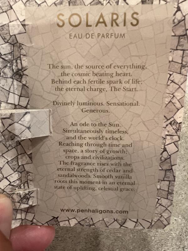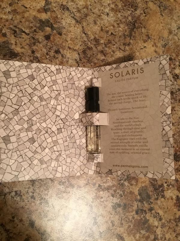 This is my second Penhaligon perfume and I love it! I have found that the parfum is long lasting and have had many compliments when wearing it. Solaris is a warm fragrance, a little musky but also light and fruity and perfect for summer. I highly recommend.