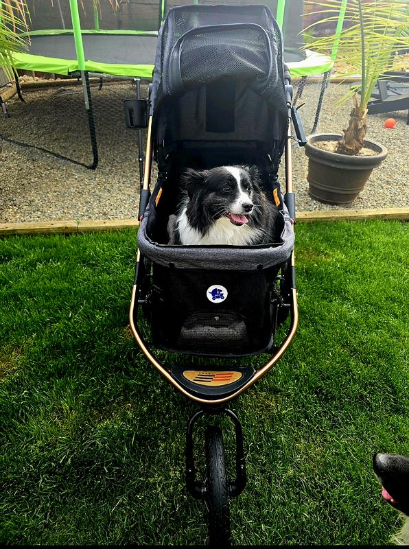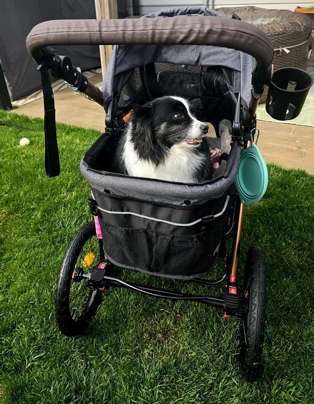 I'm absolutely thrilled with this dog stroller! It's beautifully built and comes with real wheels that glide over any sidewalk bumps effortlessly. It’s really spacious and offers tons of storage, which is a huge plus.I was pleasantly surprised by the cushy handle, its adjustable height, and the versatile cover that lets my dog sit facing forward or towards me. The lifetime warranty is the icing on the cake. I don't anticipate even needing it because of how durable this stroller is. My dog loves it too, and I couldn't be happier with my purchase.