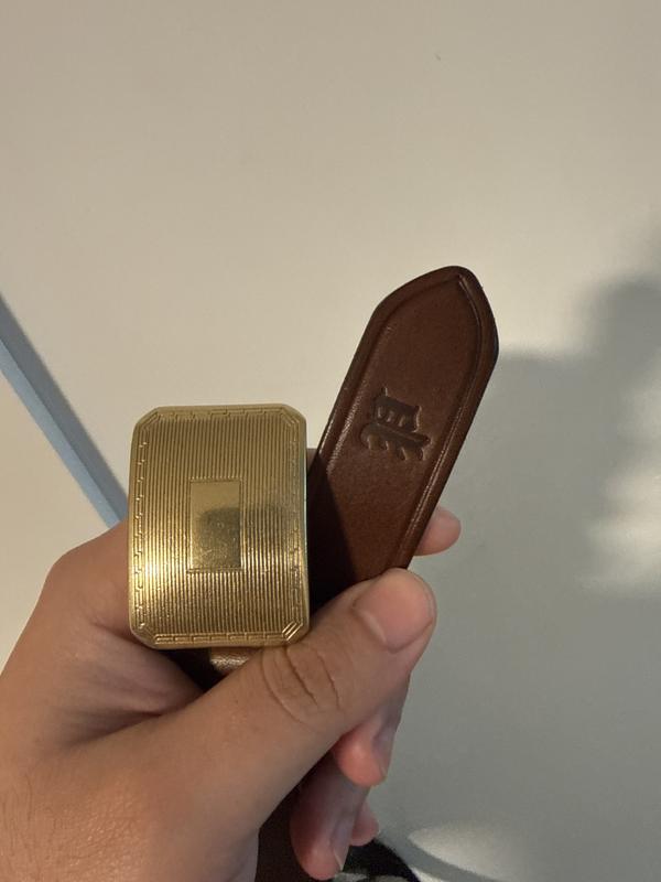 The buckle and belt are the perfect size for a dress belt. Love the engraving on the buckle and runs true to size