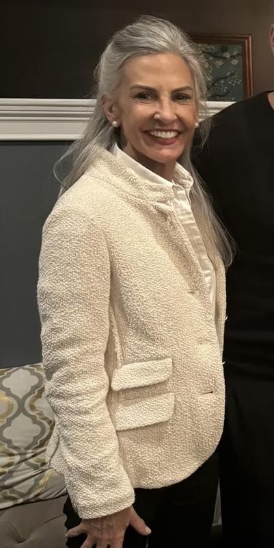 Form fitted beautiful blazer. Stretch material. Dress up or down. I would’ve given it five stars, but it’s not lined