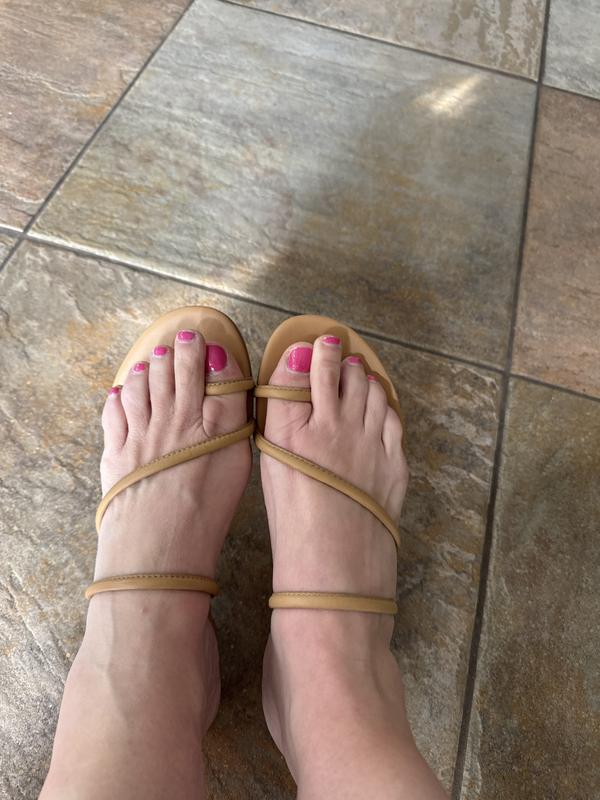 An elegant minimalist sandal for the summer. Not uncomfortable but definitely not cushy. Just barely true to size-- could have sized up.