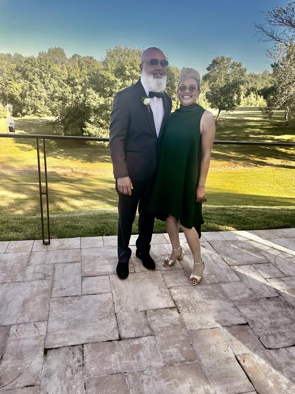 The dress looks nice overall, but it was too large, and the color is darker than shown in the photos. The material is also heavier than I expected. It might have worked better if a smaller size had been available.