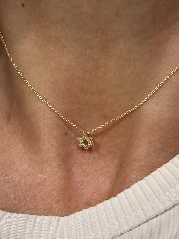 I Love Love my new necklace it’s yellow gold with a little tiny Star of David tiny diamonds just the size I wanted it’s absolutely perfect and sits on my neck beautifully !