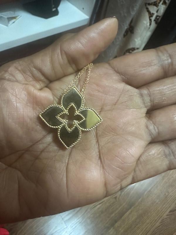 Love this necklace and being able to wear it multiple ways is amazing. Its large enough to make a statement with any outfit. Go for the larger size if you can.You can wear it long (30") or shorten it along with wearing it as 2 necklaces. The quality of this Italian designer is astonishing and knowing it was inspired by the palaces in Venice, Italy makes it even more special for me. This is my first piece from the Venetian princess collection and won't be my last piece. It's worth every penny.