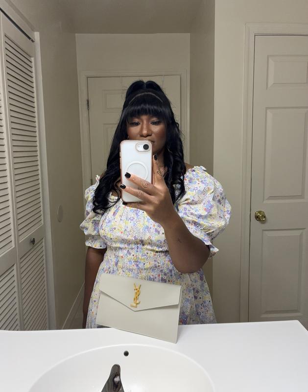 Chic, timeless clutch with beautiful croc-embossed leather and polished YSL hardware. Perfect for events and evenings out. Compact and structured, but only fits essentials and requires care due to the white leather. A great statement piece if you’re buying it for style, not storage.