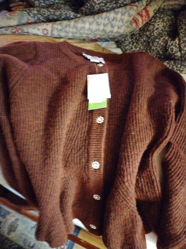 Very nice brown (chocolate) sweater. Pairs well with the knit skirt of the same hue. The sweater can also pair with jeans or slacks as well. Overall, a good pick.