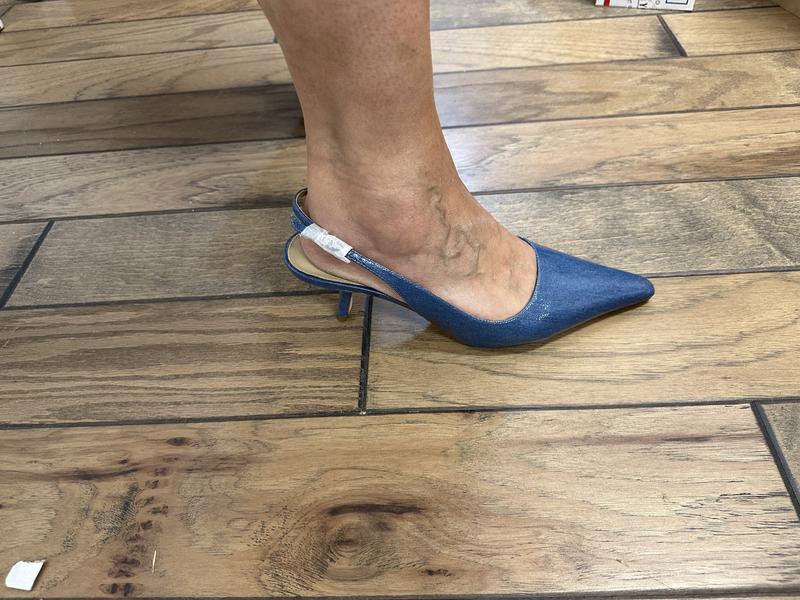 Women's Bianka Pointed Toe Light Black Kitten Heel Slingback Pumps