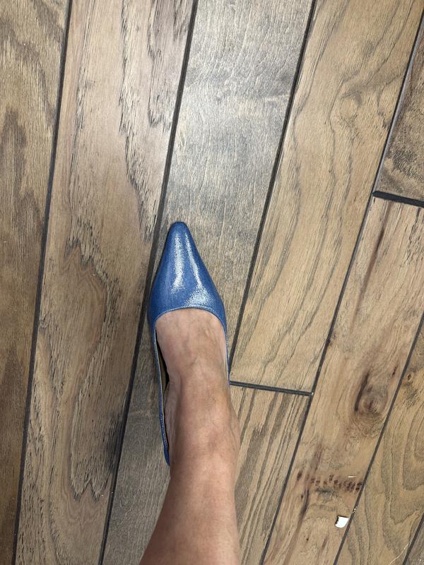 The leopard print is more subdued in person than on the online pictures: you can hardly tell there is a pattern at all. The foot has to be turned slightly for it to be visible and even then it’s overshadowed by the copper shimmer. I wanted to like it but it didn’t meet my expectations so I returned it to store.