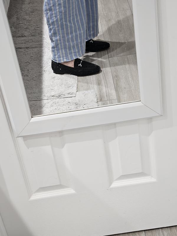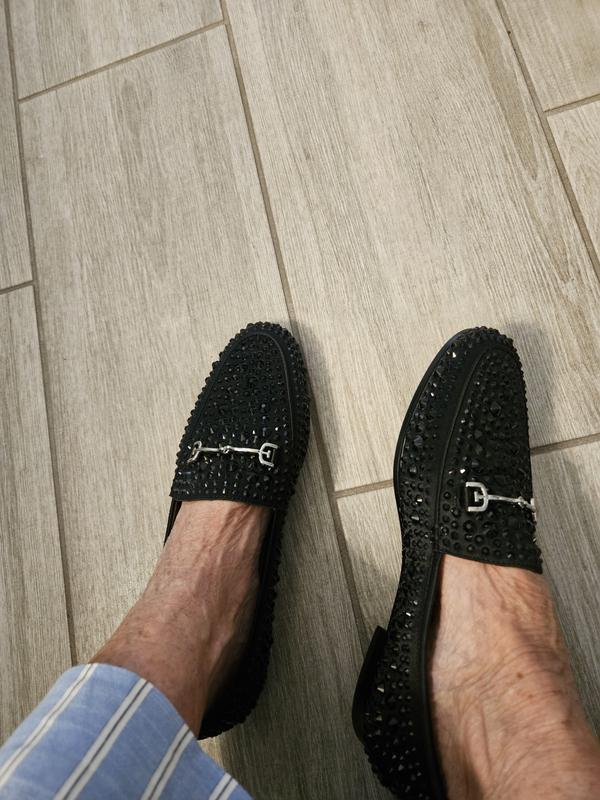 I just love these shoes. I'm definitely not a loafer person as I'm more edgy in my style, but the "bling" takes them to a different level. I only hope that the stones stay on. I'll report back if there are any issues. I sized down from a 71/2 to a 7. Buy them ladies. I got compliments while I was trying them on. P.S. please disregard my p.j.'s