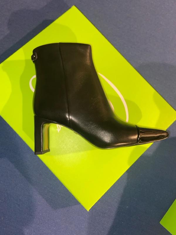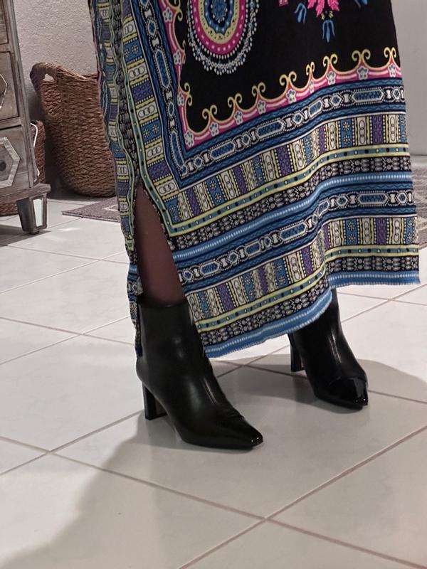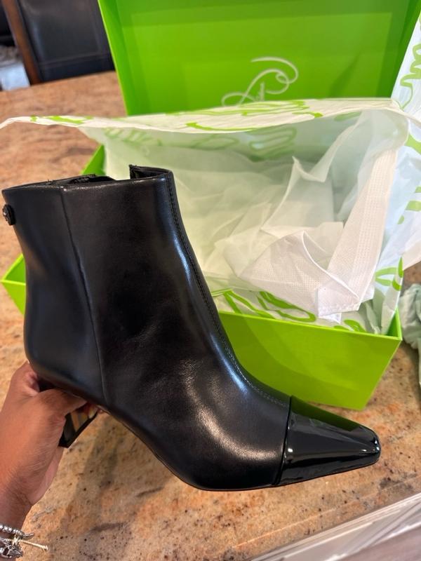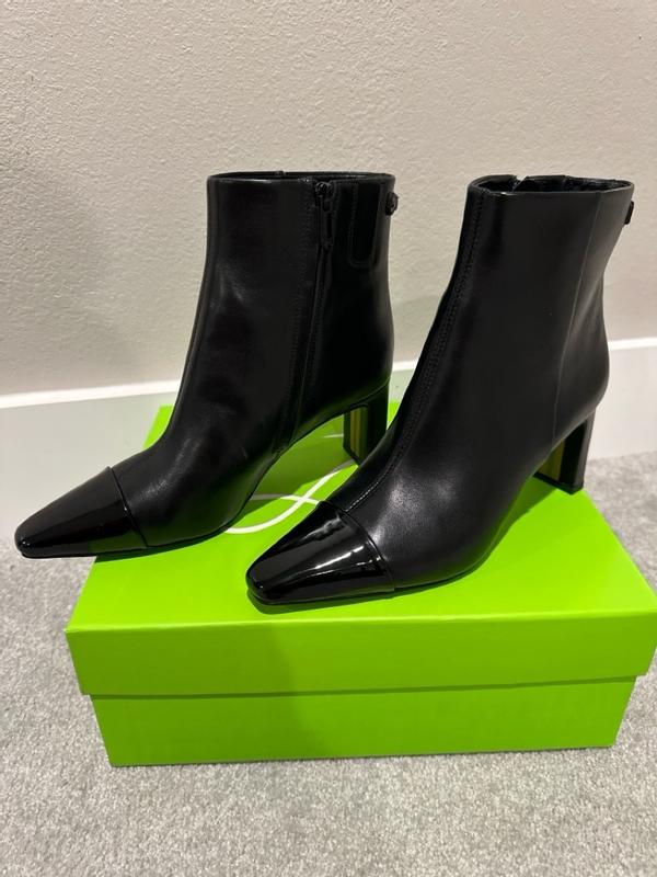 Great boot for the value. I tried to find this exact style by Sam Edelman in a solid black leather but could not, so I bought these with the black patent cap toe. I am consistently pleased with this brand and expect that these will be just as comfortable as by brown suede Saige booties.