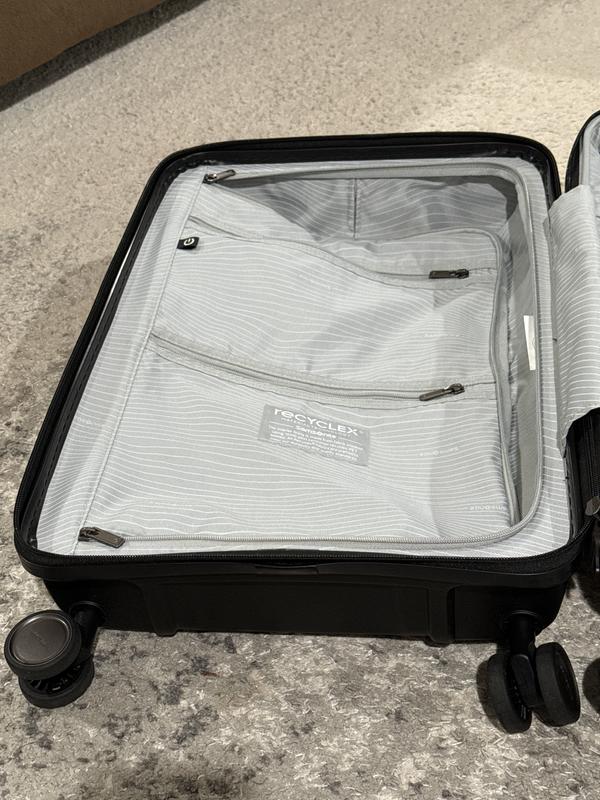 Overall great looking suitcase. Nice features I’ve never had on luggage like locks that can be opened by TSA if needed, USB charging capability, a handle that can be raised or lowered by push button, five zipper pockets inside the case, outside expansion zipper that looks and feels different than the other zippers that close the case.