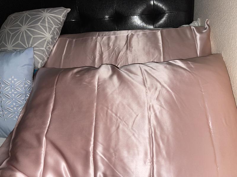 I love this silk pillowcase! The fabric feels super soft and luxurious, and the bows add such a cute touch. It looks beautiful on my bed and feels amazing on my skin.