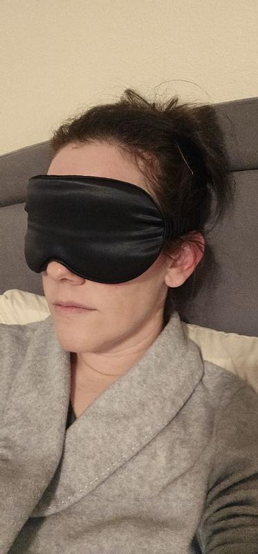 The eye mask is silky smooth. It feels luxurious on my skin and to the touch. The elastic band is comfortable while wearing. It’s perfect for travel or sleeping in a room with windows. The contorted design provides space for lashes.
