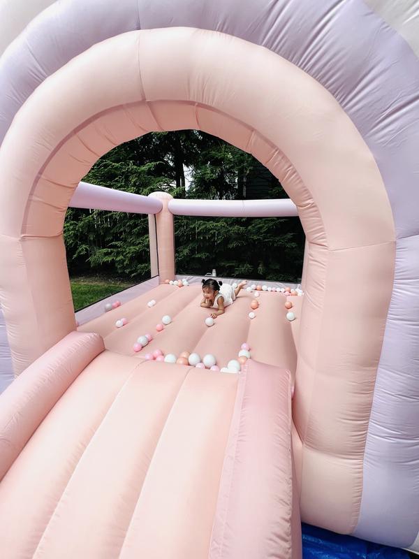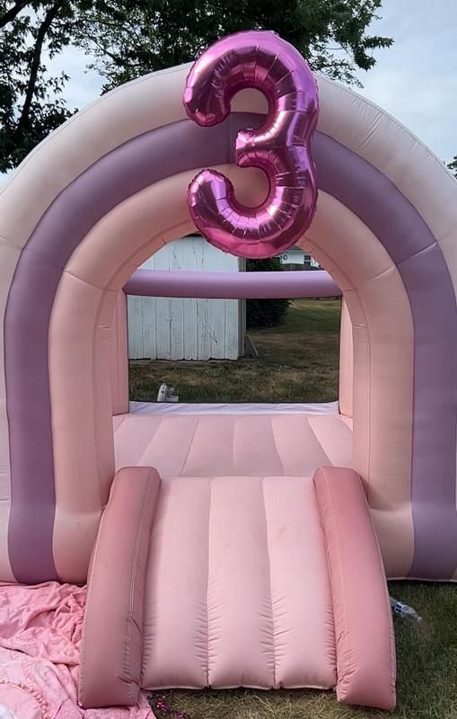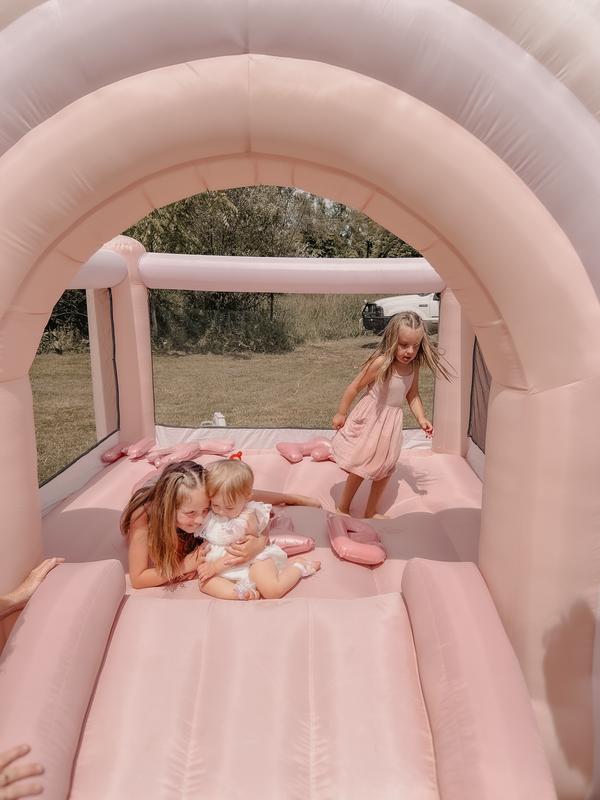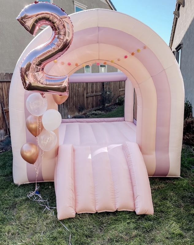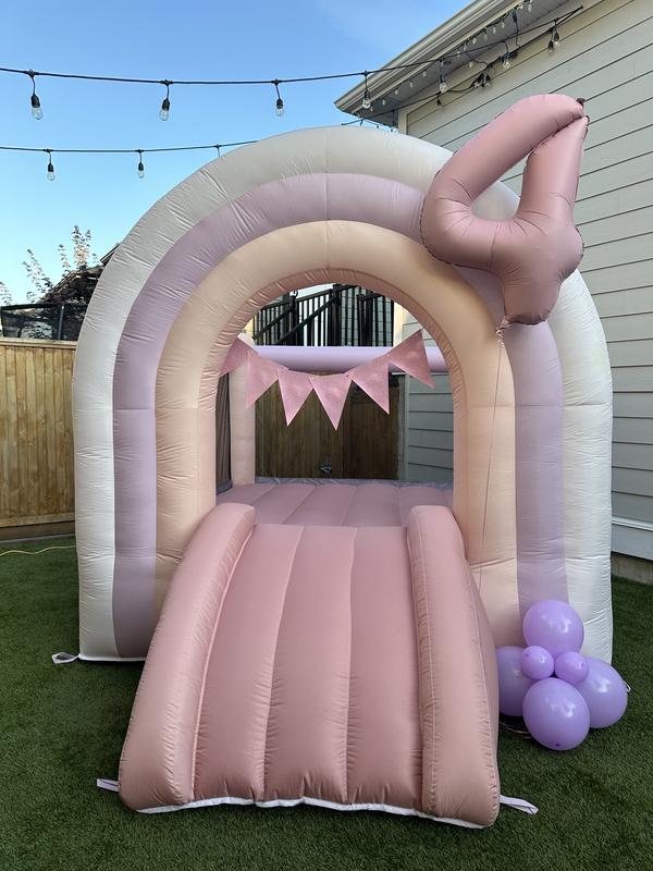 I just received our rainbow pink bounce house and it's PERFECT! I bought this for my soon to be 4 year old and 1 year old's upcoming birthdays and they're going to freak. It's the perfect size for our backyard and will be such a great addition to our home!