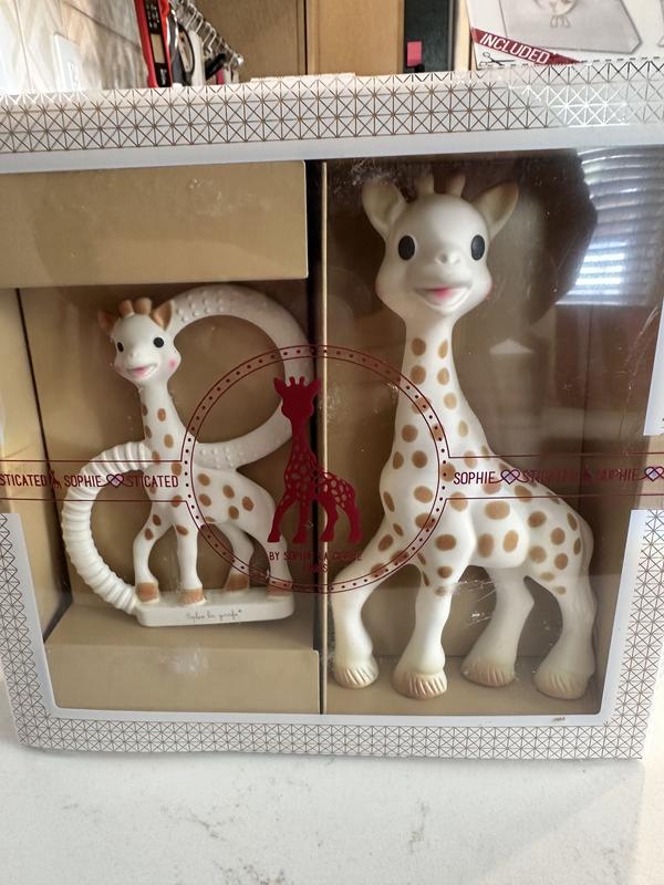 We love Sophie!!! Squeaks, our baby can easily hold Sophie and a great thresher. Has quickly become her favorite toy.