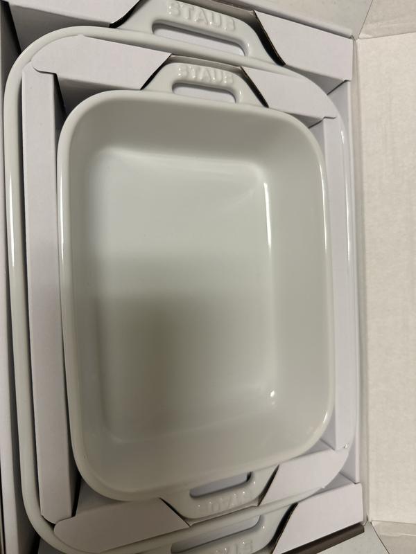These Staub ceramic pieces are of excellent quality. I used one of them as a serving dish for a dessert that I made for a party. I liked the size better than 9/13. The look is beautiful, I love it. I’m glad I bought them. Can’t wait to bake!