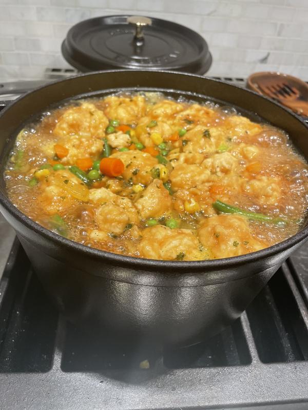 Really nice product at a good price. The price was even cheaper than the Staub outlet store we visited. I would have given it 5 stars, but the top of the lid had a small rough place on it. We were able to smooth it out, so it's not too noticeable. I have used it once to make a pot of chicken corn chowder, and it did great.