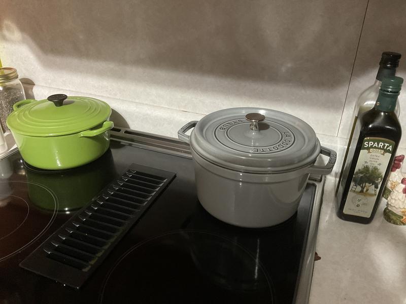 As always, Staub is first rate. This piece is very attractive in its shape. It is perfect for a large pot of soup or stew. I like the fact it is taller rather than wider. Evaporation is slower than with a wide pot.